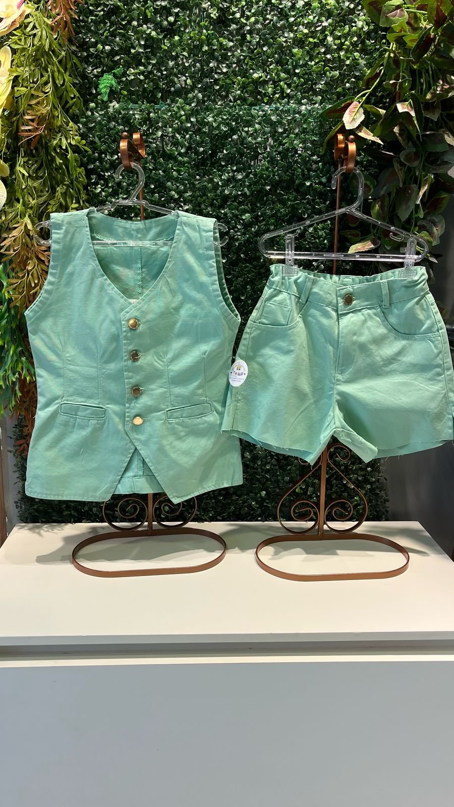 Conjunto no brim colete e bermuda 100% algodão