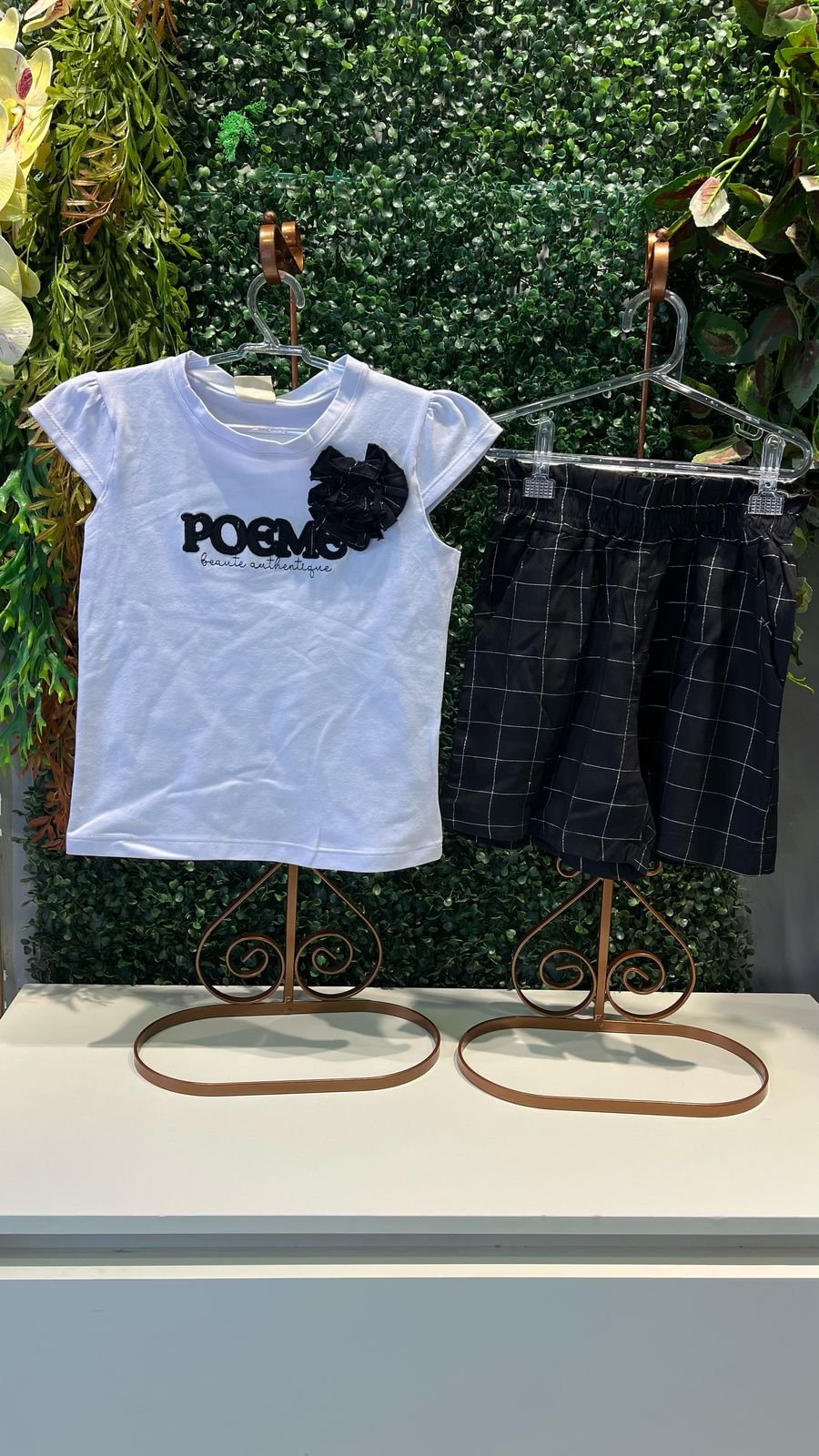 Conjunto com a blusa 100% algodão e bermuda na viscose